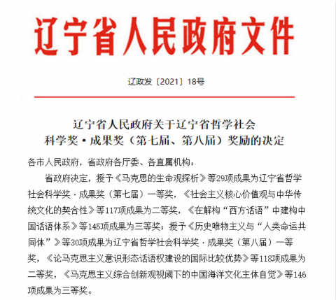 国产一区二区日本在线101项成果获第七届、第八届辽宁省哲学社会科学奖·成果奖-国产一区二区日本在线